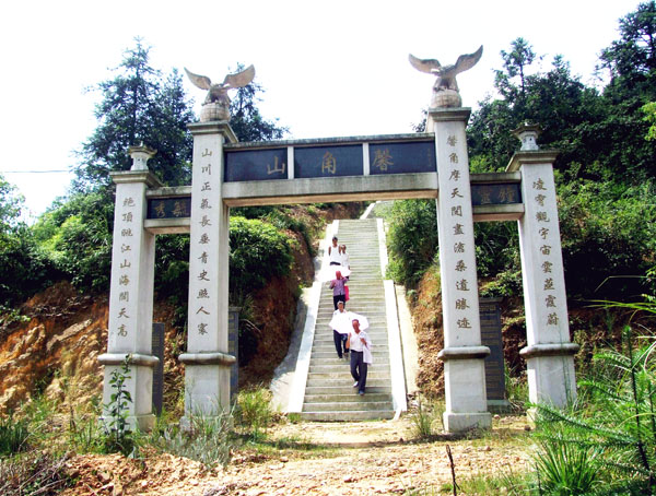 最近,兴山籍在外地工作的三位退休兄弟主动出资10多万元在兴角山下建了一座气势恢宏的山门。他们是林去病、林去存和林去思。这座山门正面有两副对联:馨角摩天阅尽沧桑遗胜迹,山川正气长垂青史照人寰;凌霄观宇宙云蒸霞蔚,绝顶眺江山海阔天高。