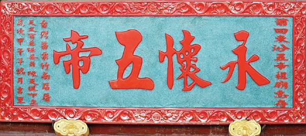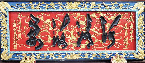 正殿正中横梁上悬挂着醒目的“代天行化”匾额,神龛内主祀五帝:黄帝、青帝、赤帝、白帝、黑帝,雕像仪态端庄,威严肃穆,令人肃然起敬。据《五帝宝经》记载,五帝,即天仙五皇大帝,是元始天尊的属臣,被封为天仙教教主,拜洞渊天尊为师,住在天仙府。五帝大慈大悲,为拯救世人,到灵山参佛,求取《金刚经》;往玉京天宫,求取《道德经》;赴东鲁,求取《孝经》。然后取三经之精髓,著成五卷宝经,下方开教,教化众生。其功德无量,万民称颂,十方敬仰。神龛两旁配祀文昌帝君、田公元帅、杨公太师、匡阜先生。殿堂两侧供奉十尊护驾将领,以及苏爷、钟神和见笑。造型各异,惟妙惟肖,雕技高超,令人佩服。